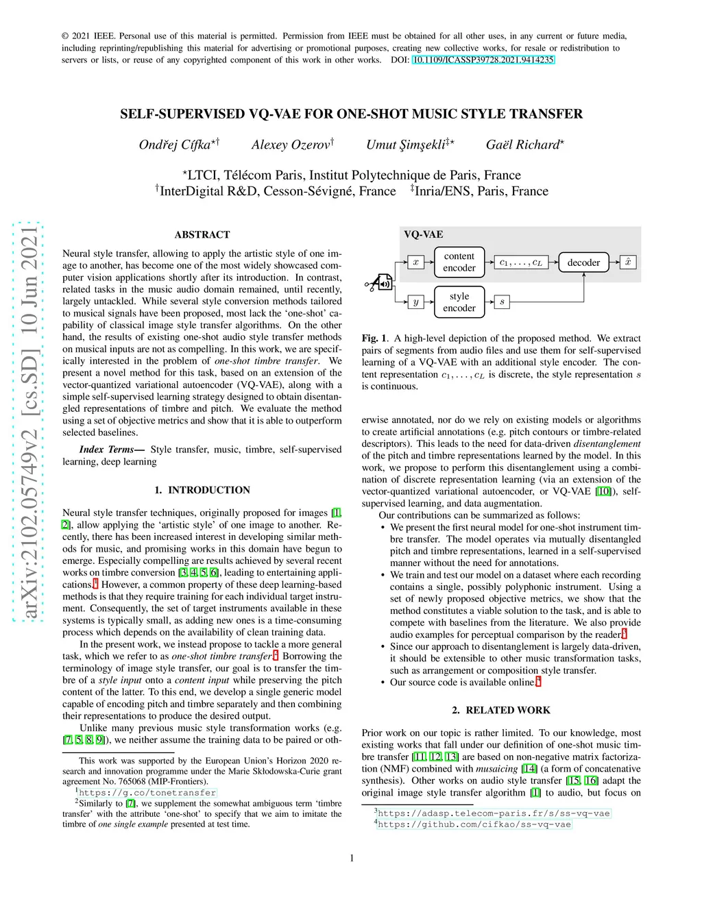 Self-Supervised VQ-VAE for One-Shot Music Style Transfer