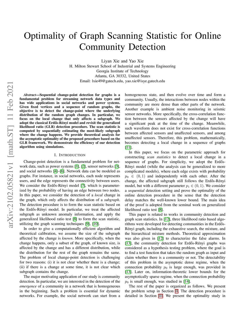 Sequential change-point detection for graphs is a fundamental problem for streaming network data types and has wide applications in social networks and power systems. Given fixed vertices and a sequence of random graphs, the objective is to detect the change-point where the underlying distribution of the random graph changes. In particular, we focus on the local change that only affects a subgraph. We adopt the classical Erdos-Renyi model and revisit the generalized likelihood ratio (GLR) detection procedure. The scan statistic is computed by sequentially estimating the most-likely subgraph where the change happens. We provide theoretical analysis for the asymptotic optimality of the proposed procedure based on the GLR framework. We demonstrate the efficiency of our detection algorithm using simulations.