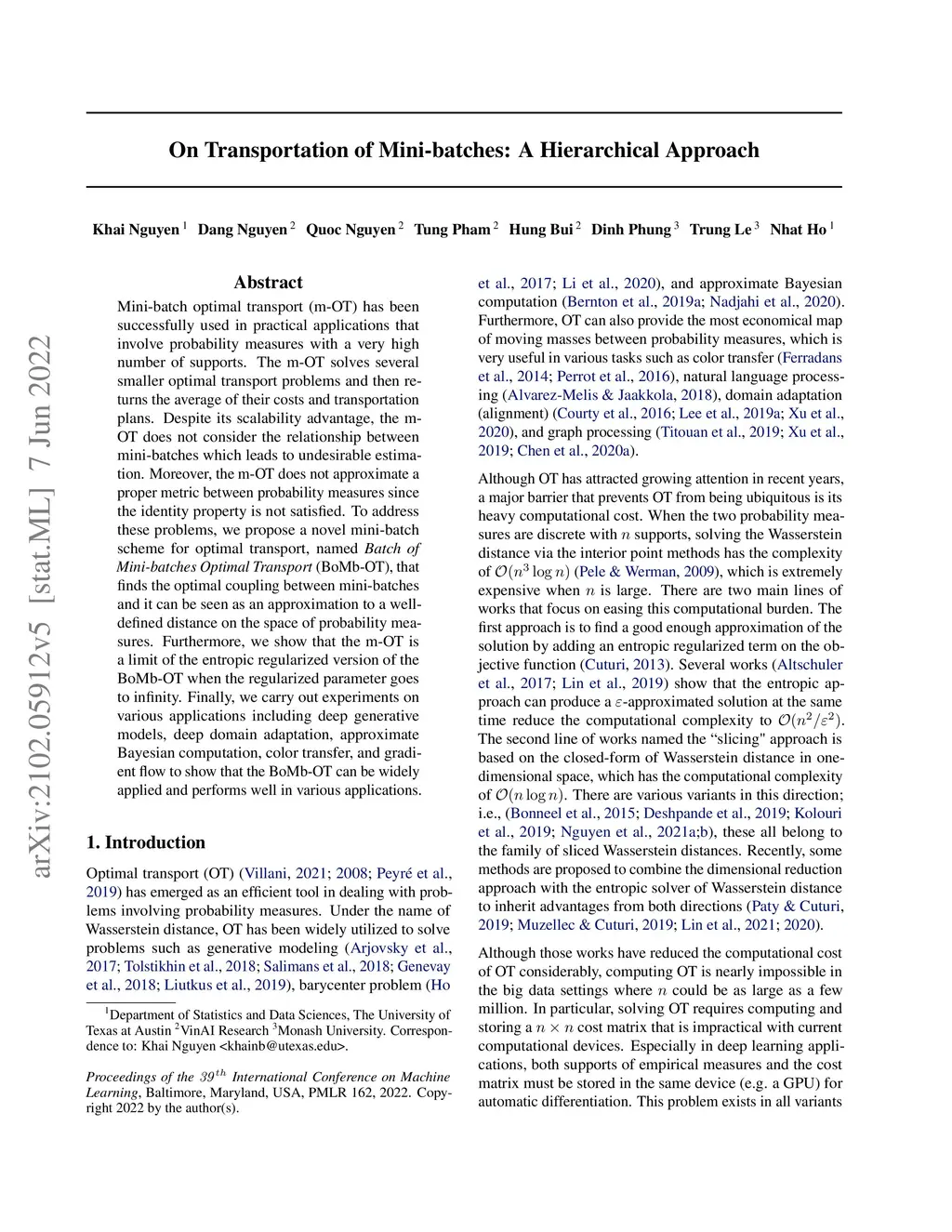On Transportation of Mini-batches: A Hierarchical Approach