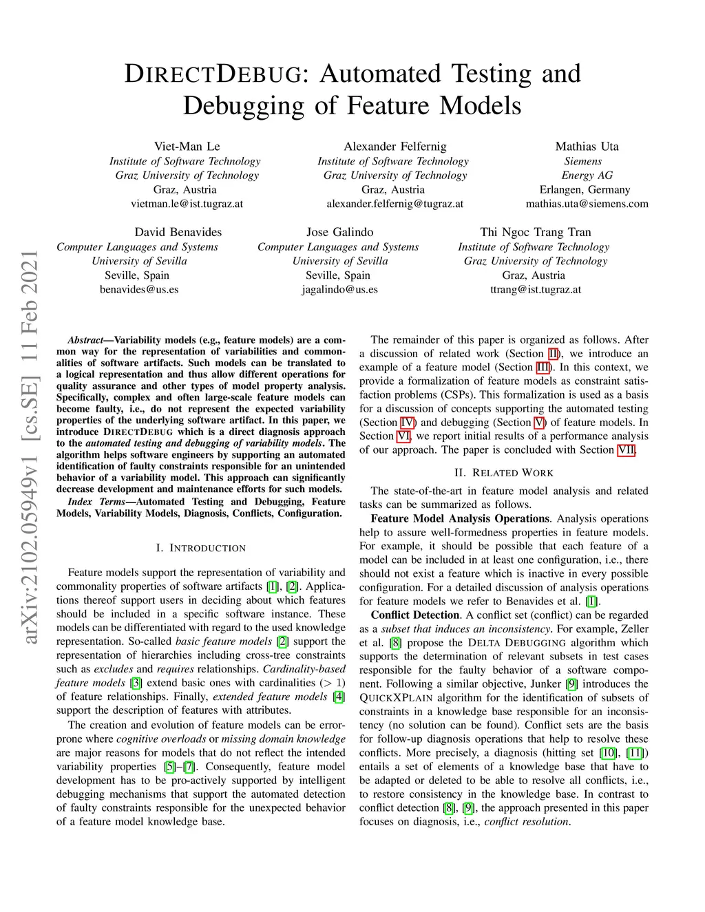 DirectDebug: Automated Testing and Debugging of Feature Models