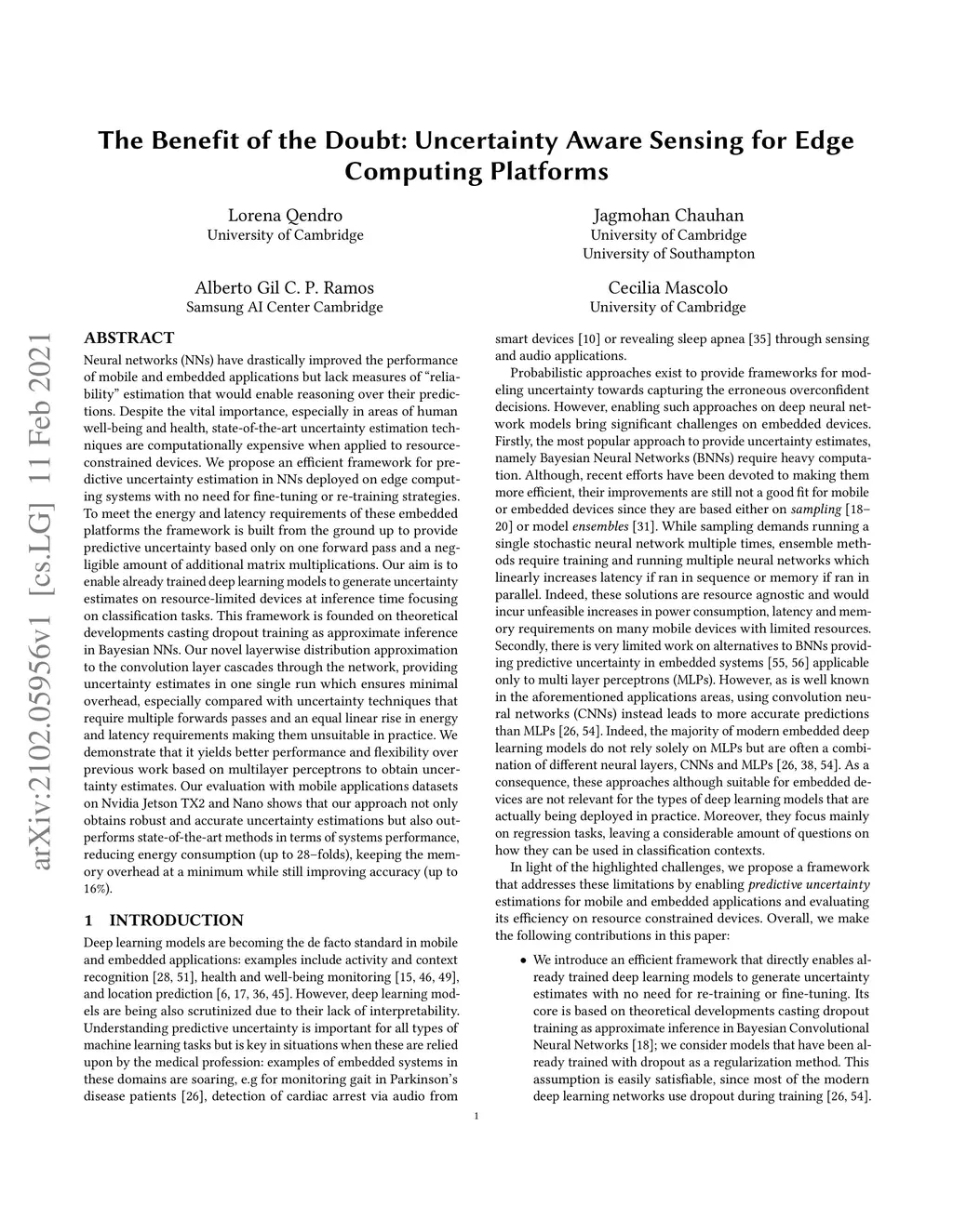 The Benefit of the Doubt: Uncertainty Aware Sensing for Edge Computing