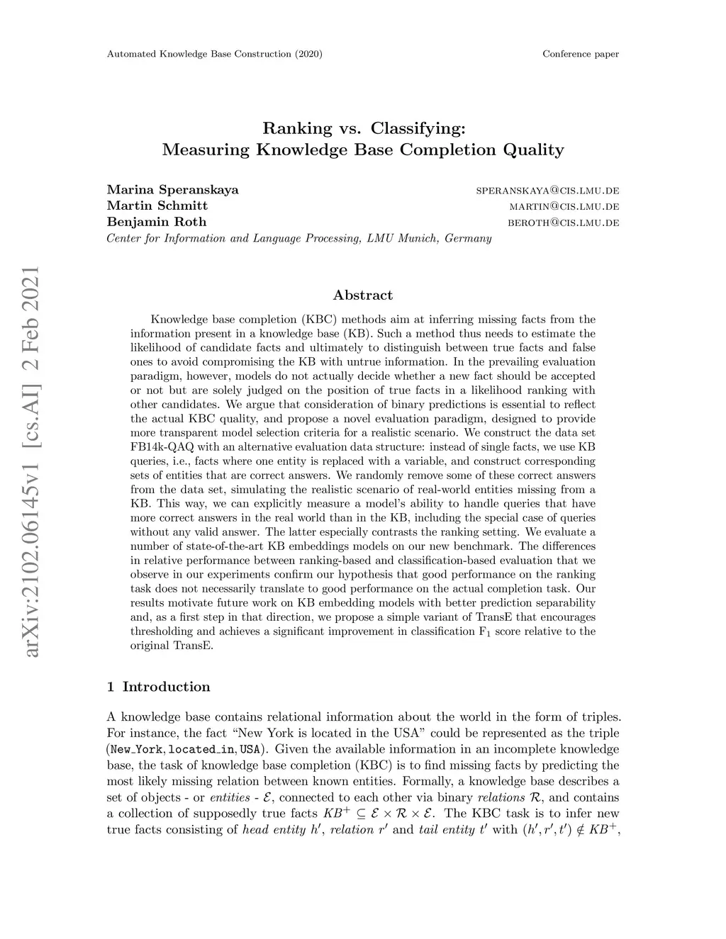 Ranking vs. Classifying: Measuring Knowledge Base Completion Quality