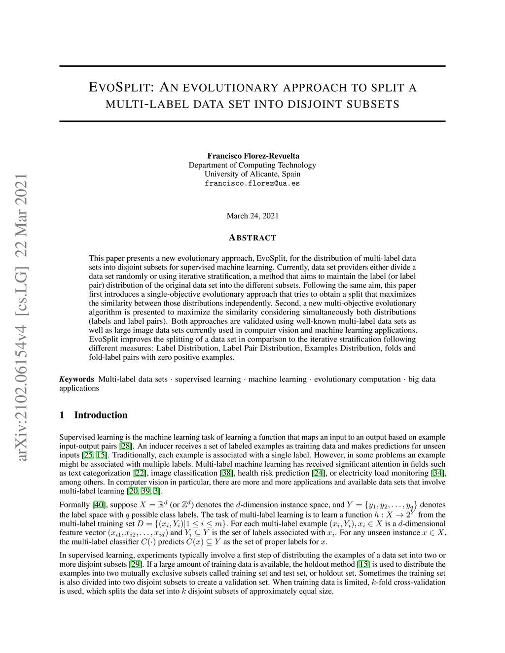 EvoSplit: An evolutionary approach to split a multi-label data set into