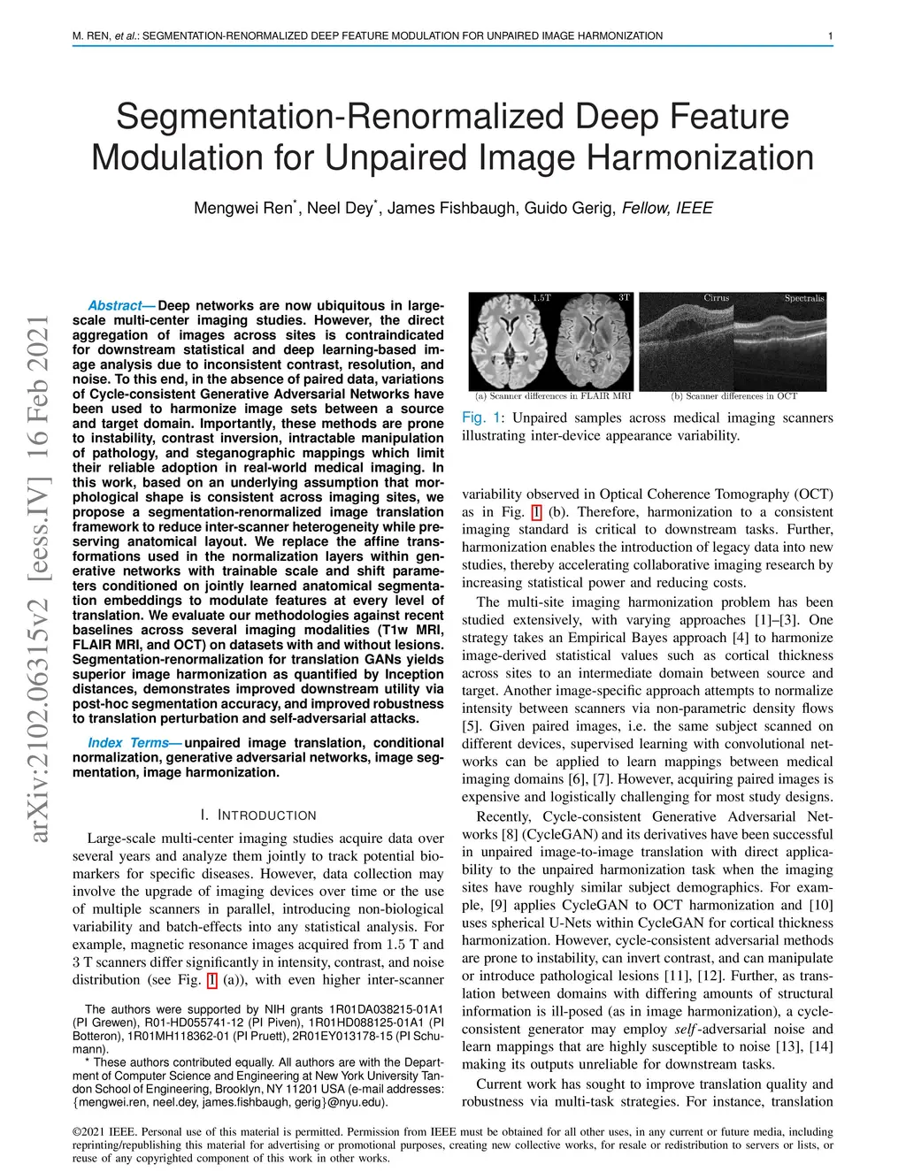 Segmentation-Renormalized Deep Feature Modulation for Unpaired Image
