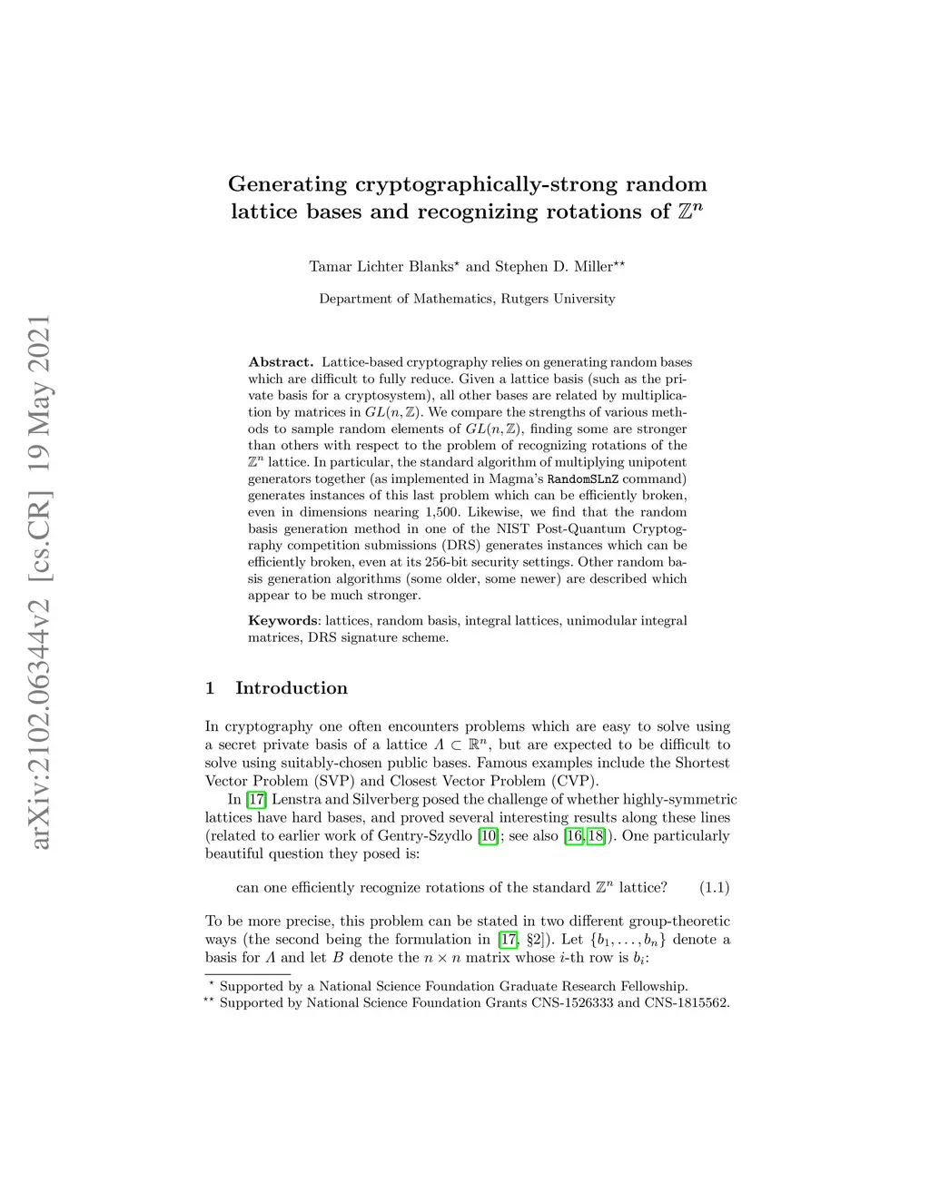 Generating cryptographically-strong random lattice bases and recognizing