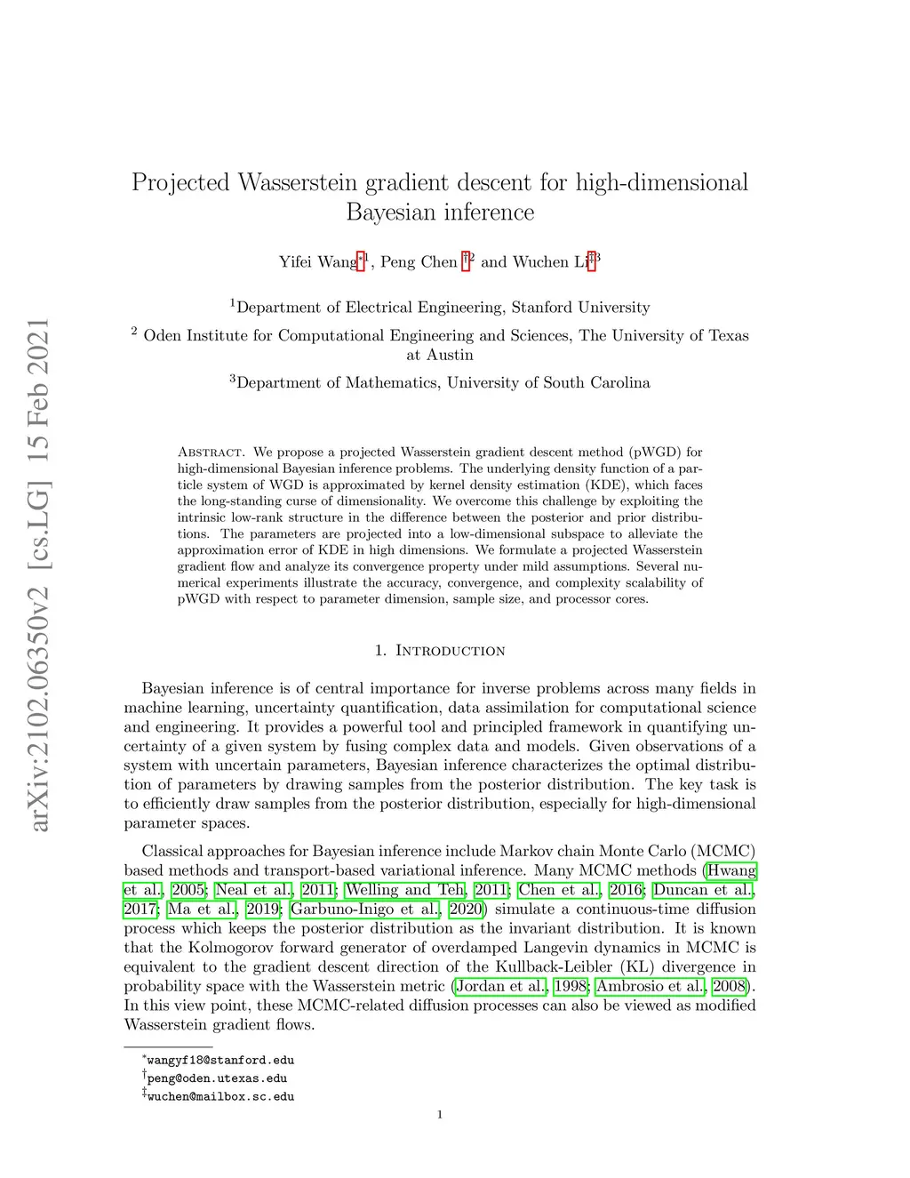Projected Wasserstein gradient descent for high-dimensional Bayesian