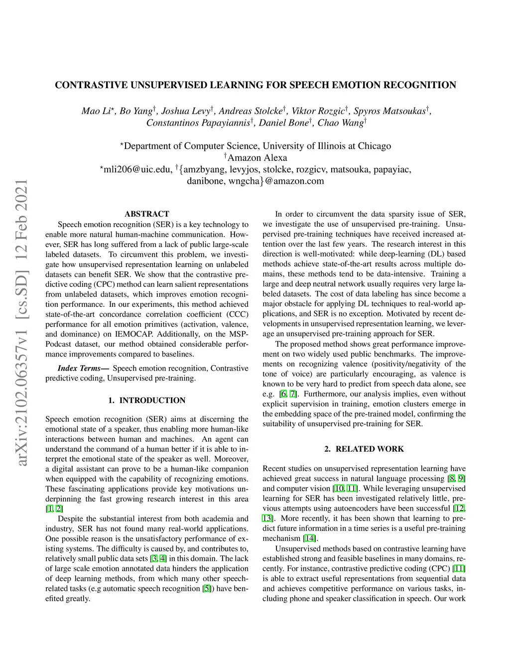 Contrastive Unsupervised Learning for Speech Emotion Recognition