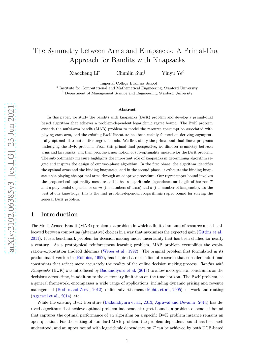 The Symmetry between Arms and Knapsacks: A Primal-Dual Approach for