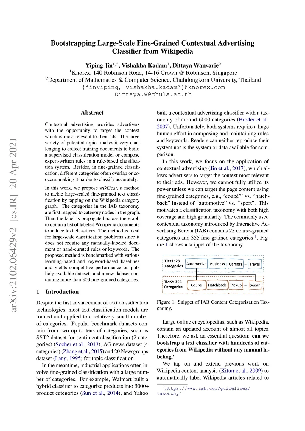 Bootstrapping Large-Scale Fine-Grained Contextual Advertising Classifier