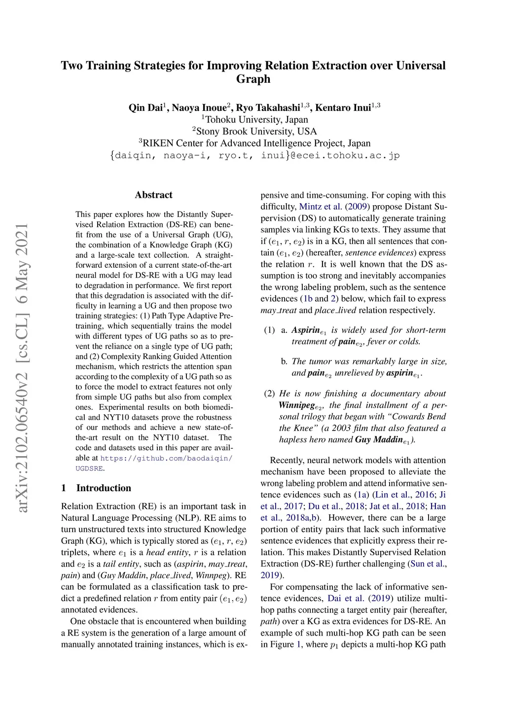This paper explores how the Distantly Supervised Relation Extraction (DS-RE) can benefit from the use of a Universal Graph (UG), the combination of a Knowledge Graph (KG) and a large-scale text collection. A straightforward extension of a current state-of-the-art neural model for DS-RE with a UG may lead to degradation in performance. We first report that this degradation is associated with the difficulty in learning a UG and then propose two training strategies: (1) Path Type Adaptive Pretraining, which sequentially trains the model with different types of UG paths so as to prevent the reliance on a single type of UG path; and (2) Complexity Ranking Guided Attention mechanism, which restricts the attention span according to the complexity of a UG path so as to force the model to extract features not only from simple UG paths but also from complex ones. Experimental results on both biomedical and NYT10 datasets prove the robustness of our methods and achieve a new state-of-the-art result on the NYT10 dataset. The code and datasets used in this paper are available at https://github.com/baodaiqin/UGDSRE.