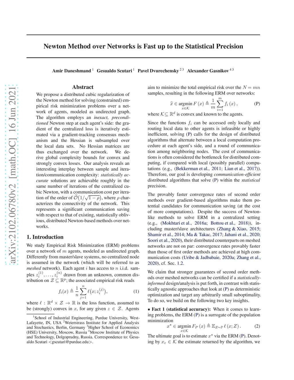 Newton Method over Networks is Fast up to the Statistical Precision