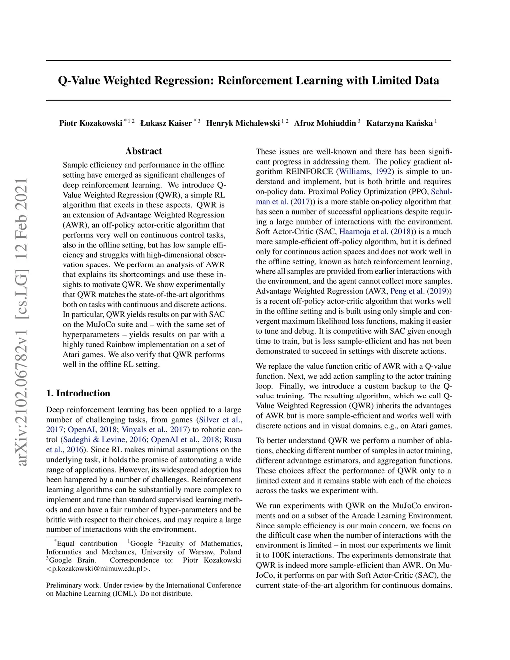 Q-Value Weighted Regression: Reinforcement Learning with Limited Data