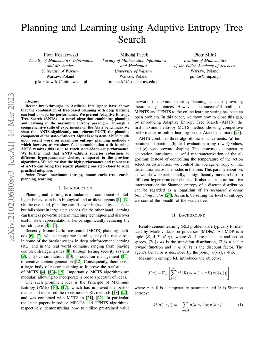 Recent breakthroughs in Artificial Intelligence have shown that the combination of tree-based planning with deep learning can lead to superior performance. We present Adaptive Entropy Tree Search (ANTS) - a novel algorithm combining planning and learning in the maximum entropy paradigm. Through a comprehensive suite of experiments on the Atari benchmark we show that ANTS significantly outperforms PUCT, the planning component of the state-of-the-art AlphaZero system. ANTS builds upon recent work on maximum entropy planning methods - which however, as we show, fail in combination with learning. ANTS resolves this issue to reach state-of-the-art performance. We further find that ANTS exhibits superior robustness to different hyperparameter choices, compared to the previous algorithms. We believe that the high performance and robustness of ANTS can bring tree search planning one step closer to wide practical adoption.