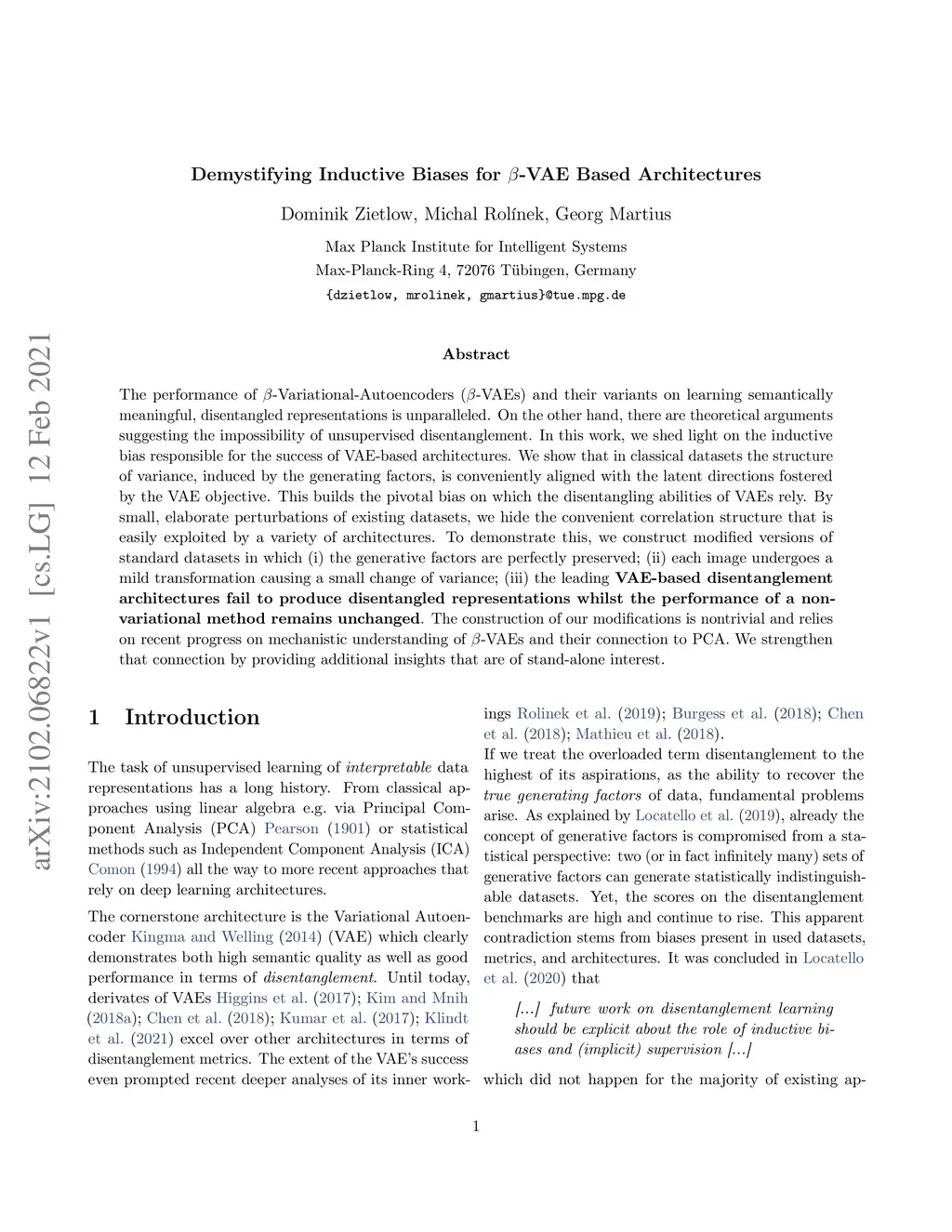 The performance of -Variational-Autoencoders (-VAEs) and their variants on learning semantically meaningful, disentangled representations is unparalleled. On the other hand, there are theoretical arguments suggesting the impossibility of unsupervised disentanglement. In this work, we shed light on the inductive bias responsible for the success of VAE-based architectures. We show that in classical datasets the structure of variance, induced by the generating factors, is conveniently aligned with the latent directions fostered by the VAE objective. This builds the pivotal bias on which the disentangling abilities of VAEs rely. By small, elaborate perturbations of existing datasets, we hide the convenient correlation structure that is easily exploited by a variety of architectures. To demonstrate this, we construct modified versions of standard datasets in which (i) the generative factors are perfectly preserved; (ii) each image undergoes a mild transformation causing a small change of variance; (iii) the leading \textbf{VAE-based disentanglement architectures fail to produce disentangled representations whilst the performance of a non-variational method remains unchanged}. The construction of our modifications is nontrivial and relies on recent progress on mechanistic understanding of -VAEs and their connection to PCA. We strengthen that connection by providing additional insights that are of stand-alone interest.