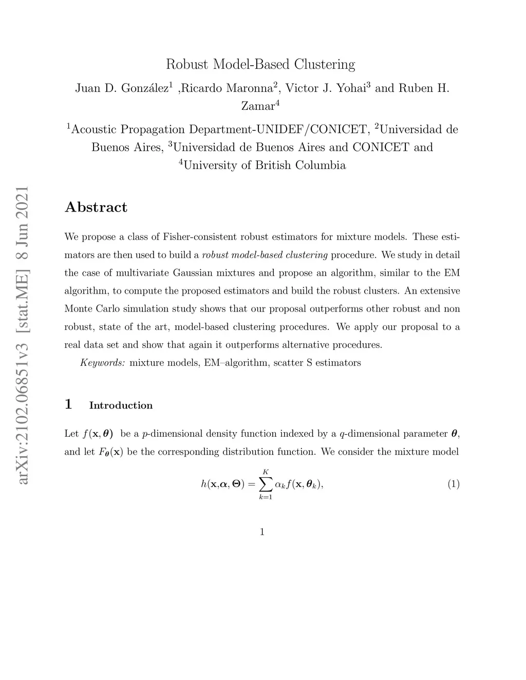 We propose a new class of robust and Fisher-consistent estimators for mixture models. These estimators can be used to construct robust model-based clustering procedures. We study in detail the case of multivariate normal mixtures and propose a procedure that uses S estimators of multivariate location and scatter. We develop an algorithm to compute the estimators and to build the clusters which is quite similar to the EM algorithm. An extensive Monte Carlo simulation study shows that our proposal compares favorably with other robust and non robust model-based clustering procedures. We apply ours and alternative procedures to a real data set and again find that the best results are obtained using our proposal.