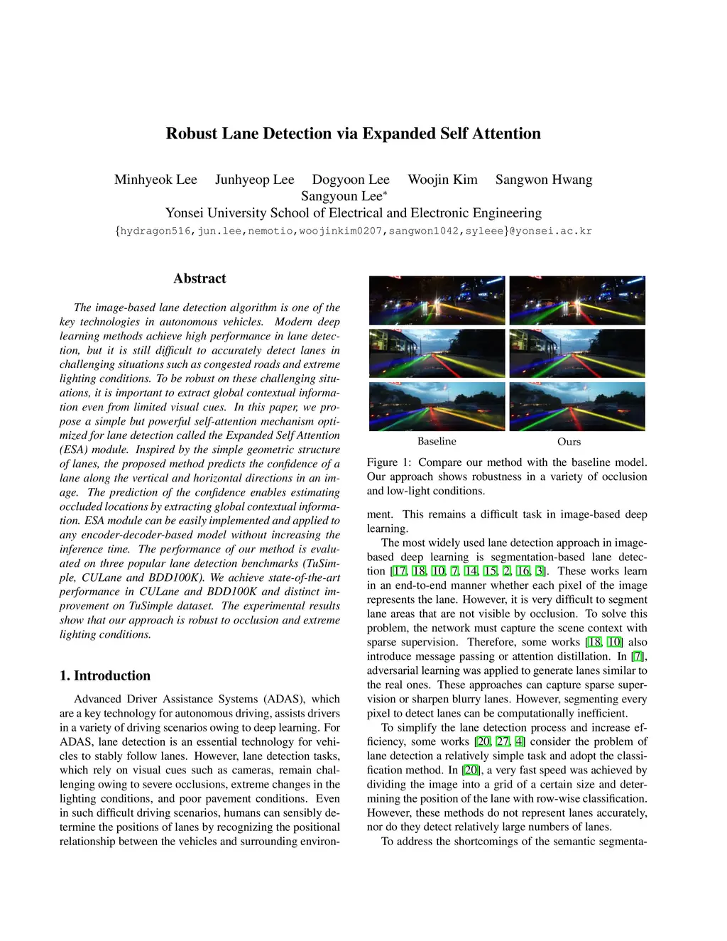 Robust Lane Detection via Expanded Self Attention
