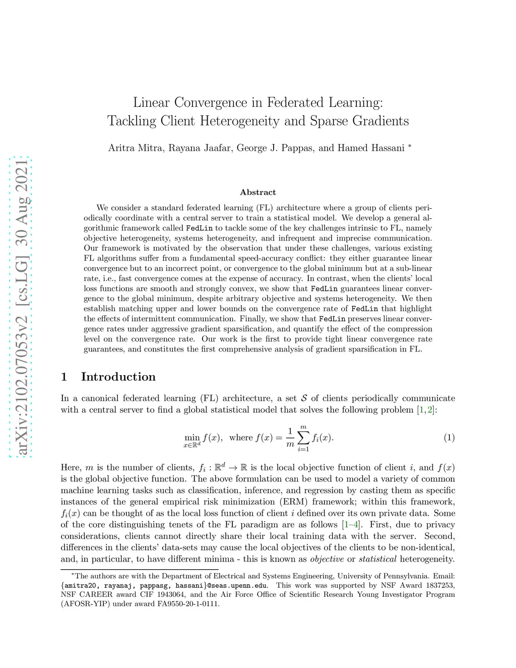Linear Convergence in Federated Learning: Tackling Client Heterogeneity