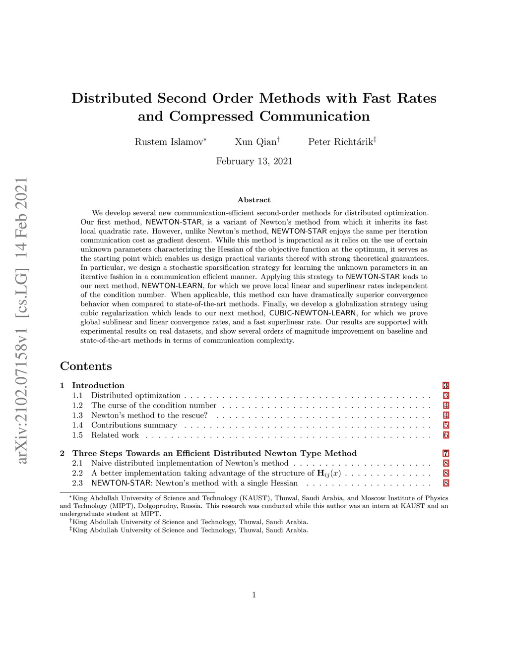We develop several new communication-efficient second-order methods for distributed optimization. Our first method, NEWTON-STAR, is a variant of Newton's method from which it inherits its fast local quadratic rate. However, unlike Newton's method, NEWTON-STAR enjoys the same per iteration communication cost as gradient descent. While this method is impractical as it relies on the use of certain unknown parameters characterizing the Hessian of the objective function at the optimum, it serves as the starting point which enables us design practical variants thereof with strong theoretical guarantees. In particular, we design a stochastic sparsification strategy for learning the unknown parameters in an iterative fashion in a communication efficient manner. Applying this strategy to NEWTON-STAR leads to our next method, NEWTON-LEARN, for which we prove local linear and superlinear rates independent of the condition number. When applicable, this method can have dramatically superior convergence behavior when compared to state-of-the-art methods. Finally, we develop a globalization strategy using cubic regularization which leads to our next method, CUBIC-NEWTON-LEARN, for which we prove global sublinear and linear convergence rates, and a fast superlinear rate. Our results are supported with experimental results on real datasets, and show several orders of magnitude improvement on baseline and state-of-the-art methods in terms of communication complexity.