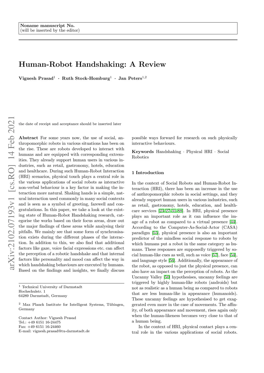 Human-Robot Handshaking: A Review