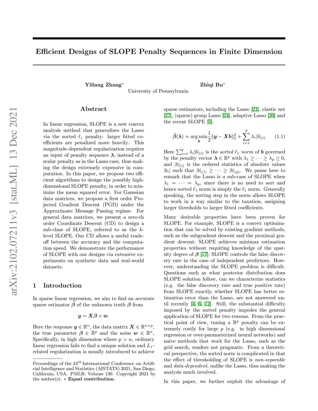 In linear regression, SLOPE is a new convex analysis method that generalizes the Lasso via the sorted L1 penalty: larger fitted coefficients are penalized more heavily. This magnitude-dependent regularization requires an input of penalty sequence , instead of a scalar penalty as in the Lasso case, thus making the design extremely expensive in computation. In this paper, we propose two efficient algorithms to design the possibly high-dimensional SLOPE penalty, in order to minimize the mean squared error. For Gaussian data matrices, we propose a first order Projected Gradient Descent (PGD) under the Approximate Message Passing regime. For general data matrices, we present a zero-th order Coordinate Descent (CD) to design a sub-class of SLOPE, referred to as the k-level SLOPE. Our CD allows a useful trade-off between the accuracy and the computation speed. We demonstrate the performance of SLOPE with our designs via extensive experiments on synthetic data and real-world datasets.