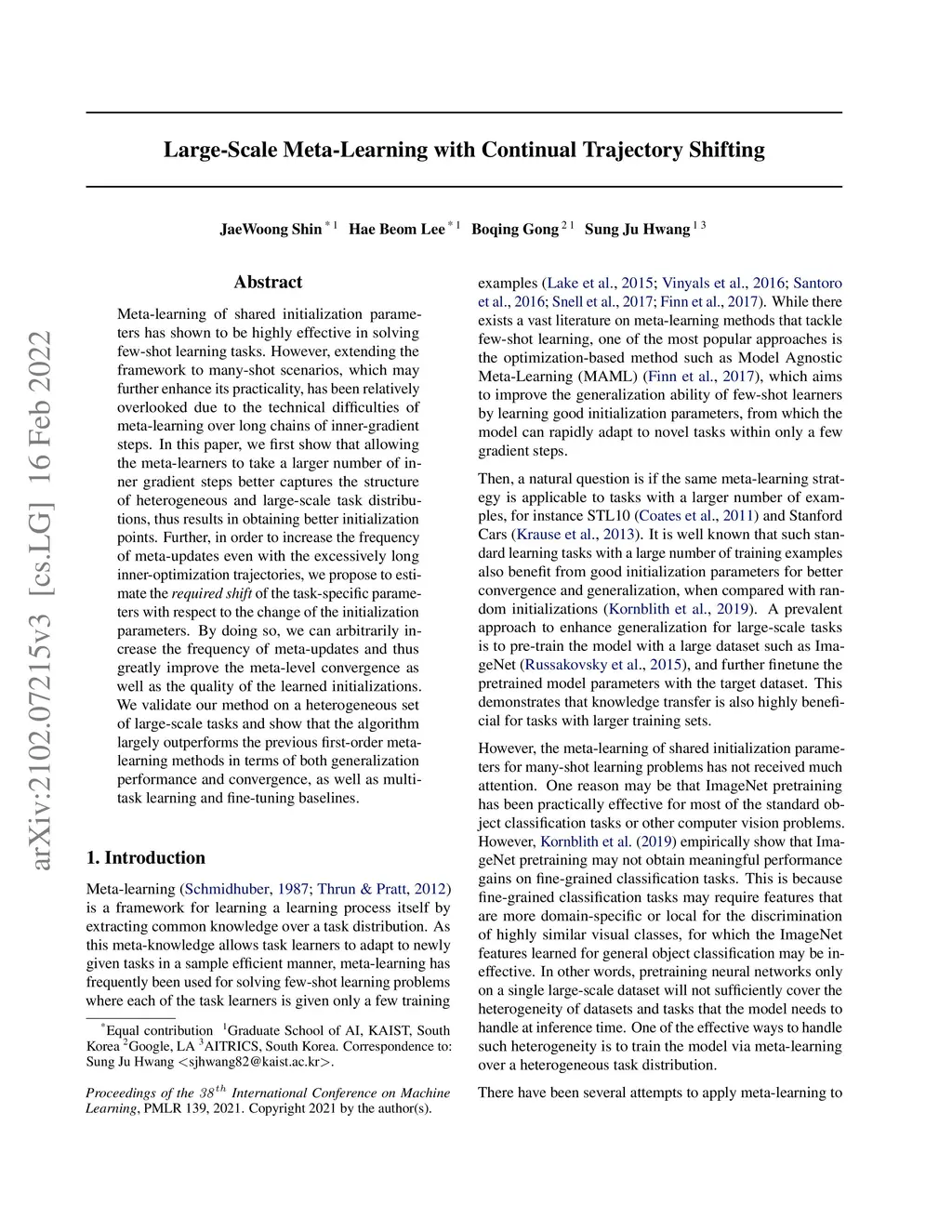 Large-Scale Meta-Learning with Continual Trajectory Shifting
