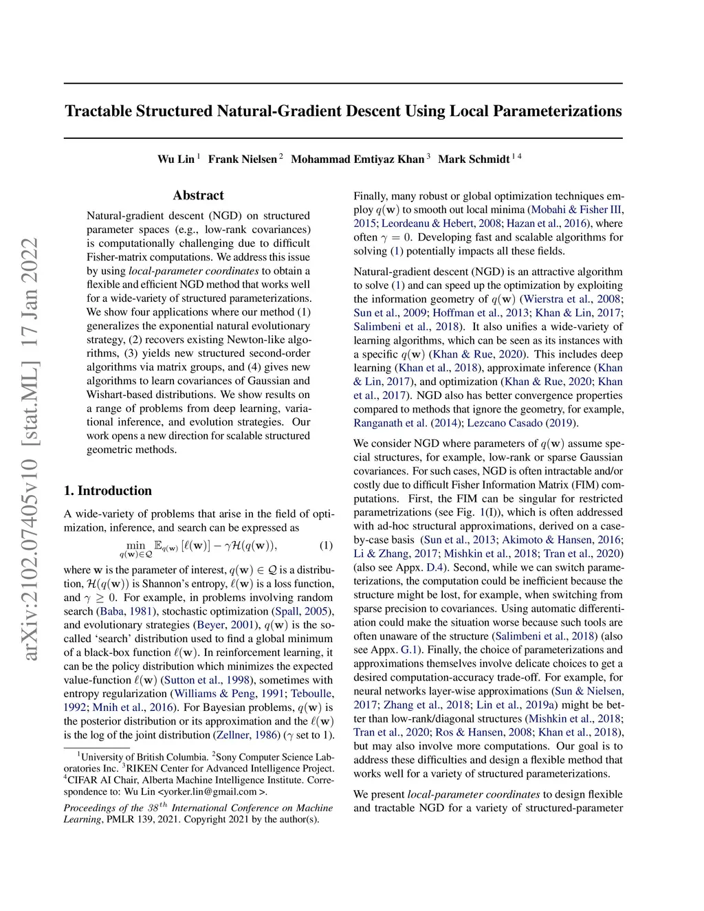 Tractable structured natural gradient descent using local