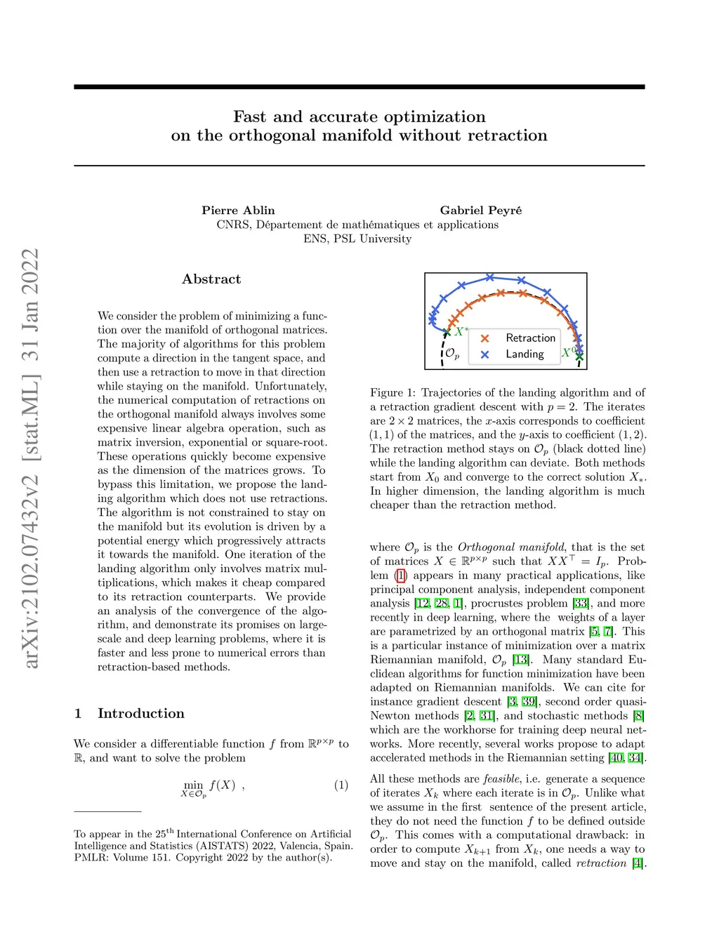 We consider the problem of minimizing a function over the manifold of orthogonal matrices. The majority of algorithms for this problem compute a direction in the tangent space, and then use a retraction to move in that direction while staying on the manifold. Unfortunately, the numerical computation of retractions on the orthogonal manifold always involves some expensive linear algebra operation, such as matrix inversion, exponential or square-root. These operations quickly become expensive as the dimension of the matrices grows. To bypass this limitation, we propose the landing algorithm which does not use retractions. The algorithm is not constrained to stay on the manifold but its evolution is driven by a potential energy which progressively attracts it towards the manifold. One iteration of the landing algorithm only involves matrix multiplications, which makes it cheap compared to its retraction counterparts. We provide an analysis of the convergence of the algorithm, and demonstrate its promises on large-scale and deep learning problems, where it is faster and less prone to numerical errors than retraction-based methods.