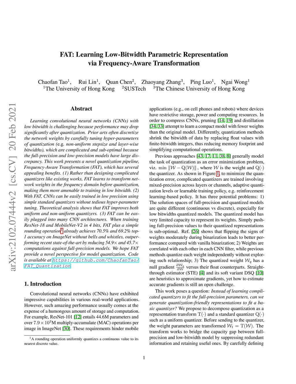 FAT: Learning Low-Bitwidth Parametric Representation via Frequency-Aware