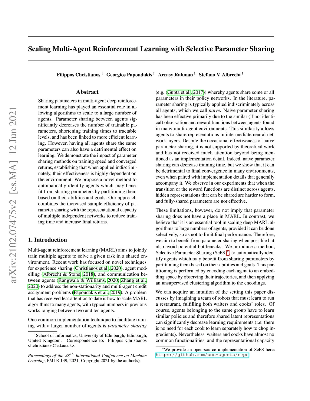 Scaling Multi-Agent Reinforcement Learning with Selective Parameter