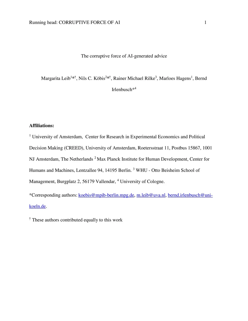 The corruptive force of AI-generated advice