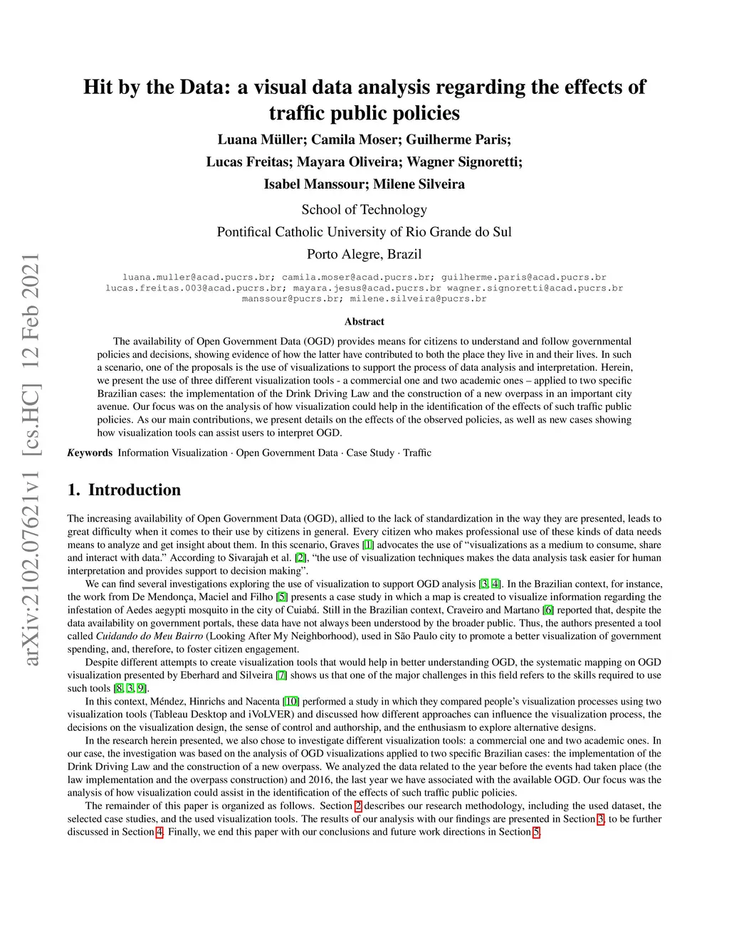 The availability of Open Government Data (OGD) provides means for citizens to understand and follow governmental policies and decisions, showing evidence of how the latter have contributed to both the place they live in and their lives. In such a scenario, one of the proposals is the use of visualizations to support the process of data analysis and interpretation. Herein, we present the use of three different visualization tools, a commercial one and two academic ones, applied to two specific Brazilian cases: the implementation of the Drink Driving Law and the construction of a new overpass in an important city avenue. Our focus was on the analysis of how visualization could help in the identification of the effects of such traffic public policies. As our main contributions, we present details on the effects of the observed policies, as well as new cases showing how visualization tools can assist users to interpret OGD.