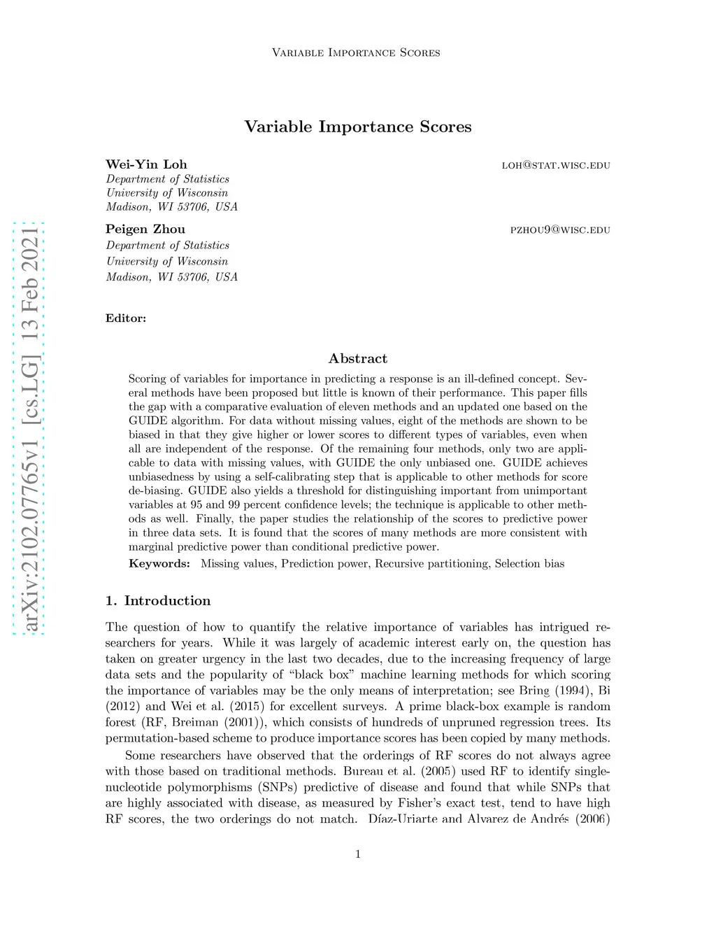 Variable importance scores