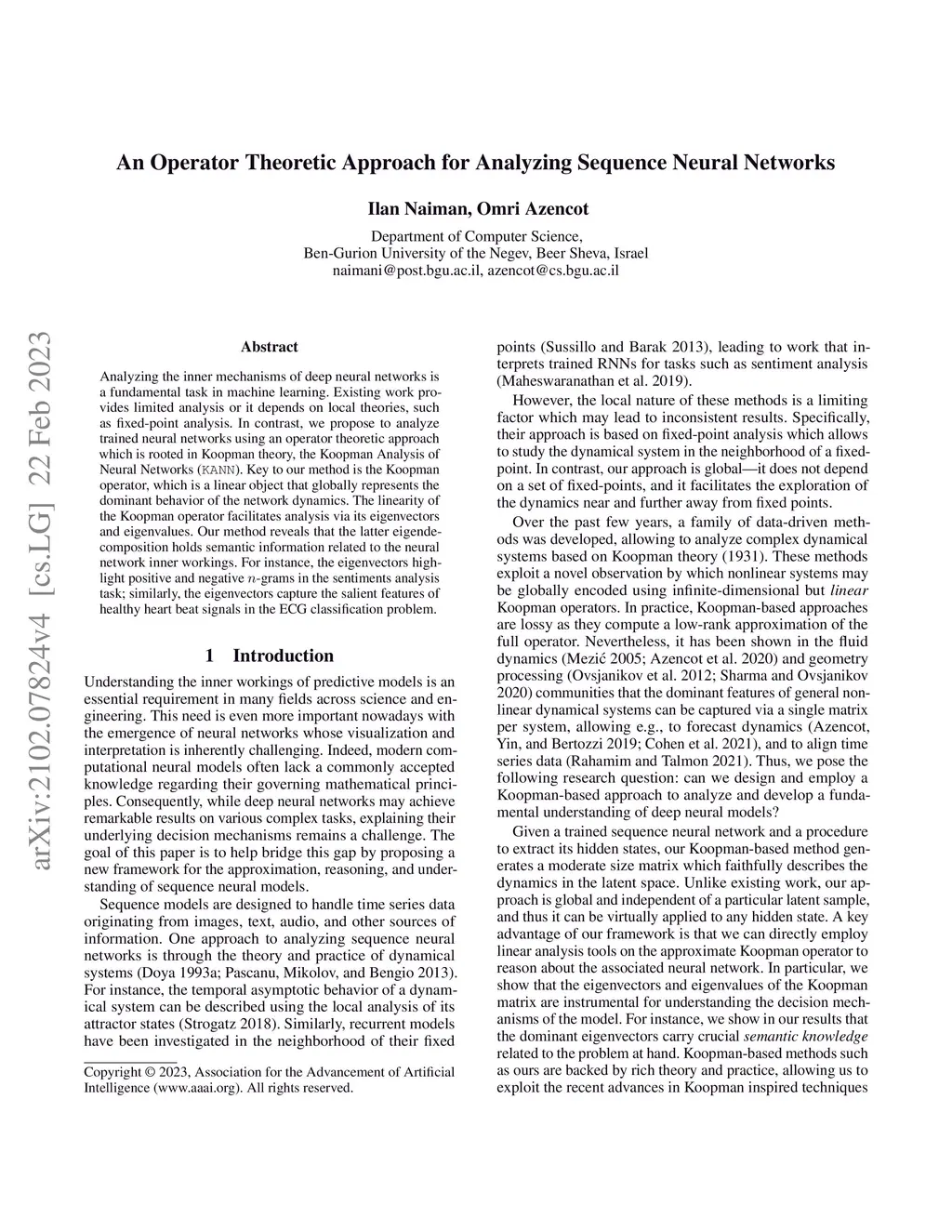 An Operator Theoretic Approach for Analyzing Sequence Neural Networks