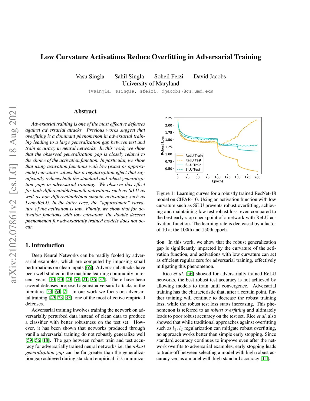 Low Curvature Activations Reduce Overfitting in Adversarial Training