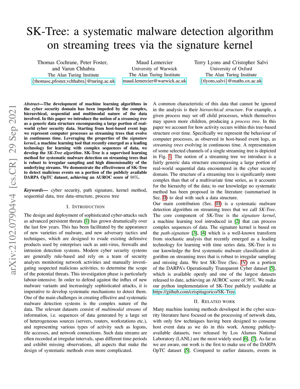 SK-Tree: a systematic malware detection algorithmon streaming trees via