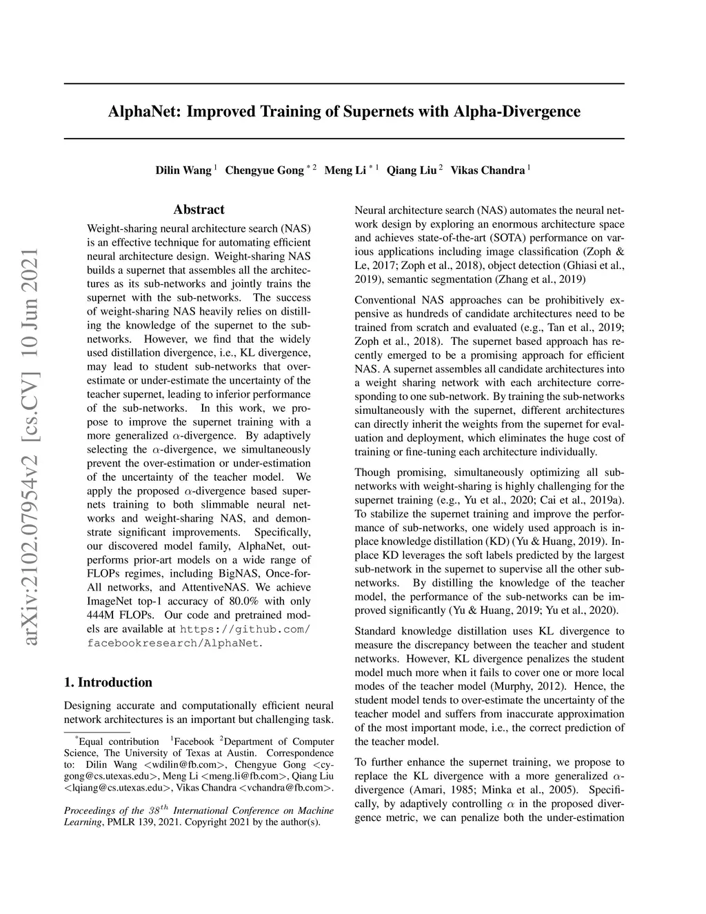 AlphaNet: Improved Training of Supernets with Alpha-Divergence