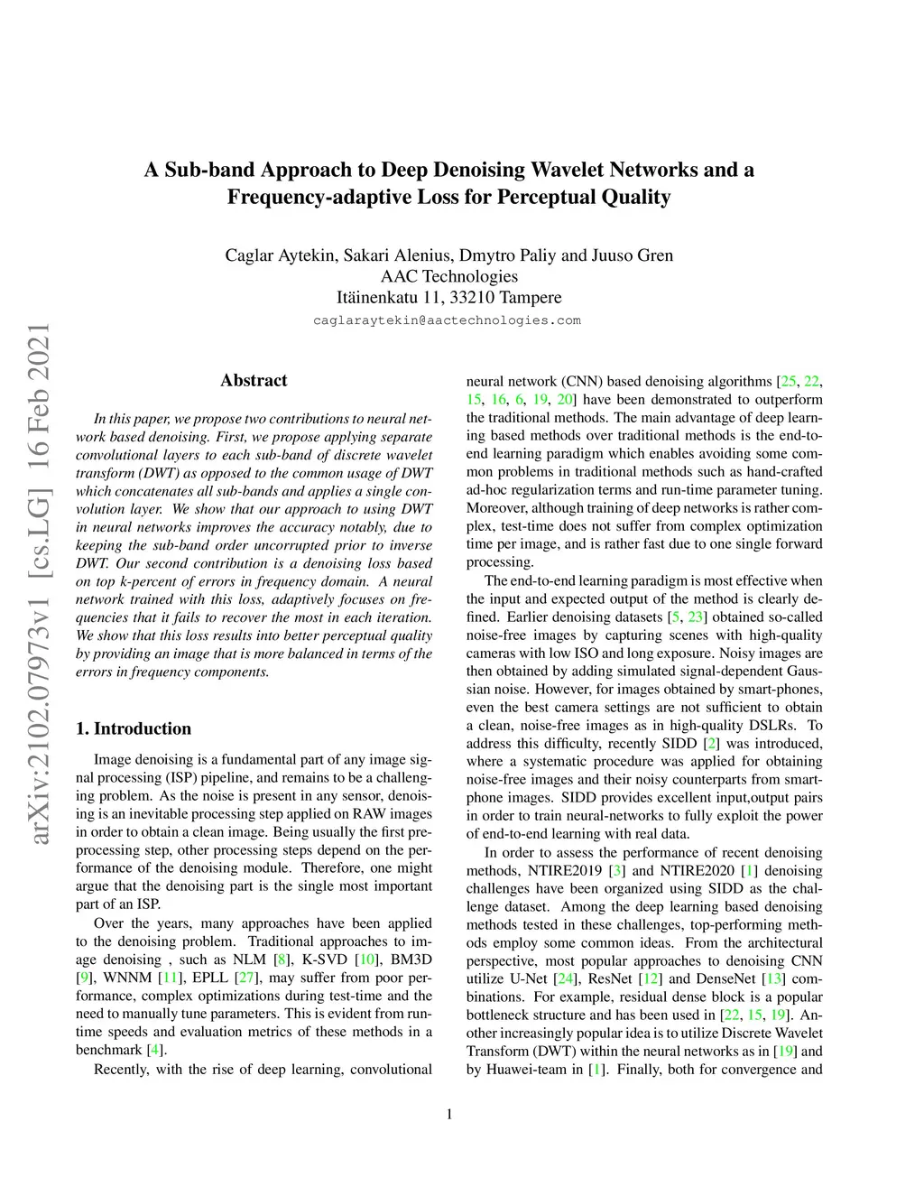 In this paper, we propose two contributions to neural network based denoising. First, we propose applying separate convolutional layers to each sub-band of discrete wavelet transform (DWT) as opposed to the common usage of DWT which concatenates all sub-bands and applies a single convolution layer. We show that our approach to using DWT in neural networks improves the accuracy notably, due to keeping the sub-band order uncorrupted prior to inverse DWT. Our second contribution is a denoising loss based on top k-percent of errors in frequency domain. A neural network trained with this loss, adaptively focuses on frequencies that it fails to recover the most in each iteration. We show that this loss results into better perceptual quality by providing an image that is more balanced in terms of the errors in frequency components.