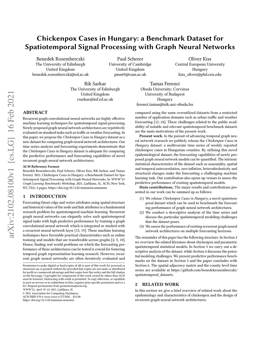 Chickenpox Cases in Hungary: a Benchmark Dataset for Spatiotemporal