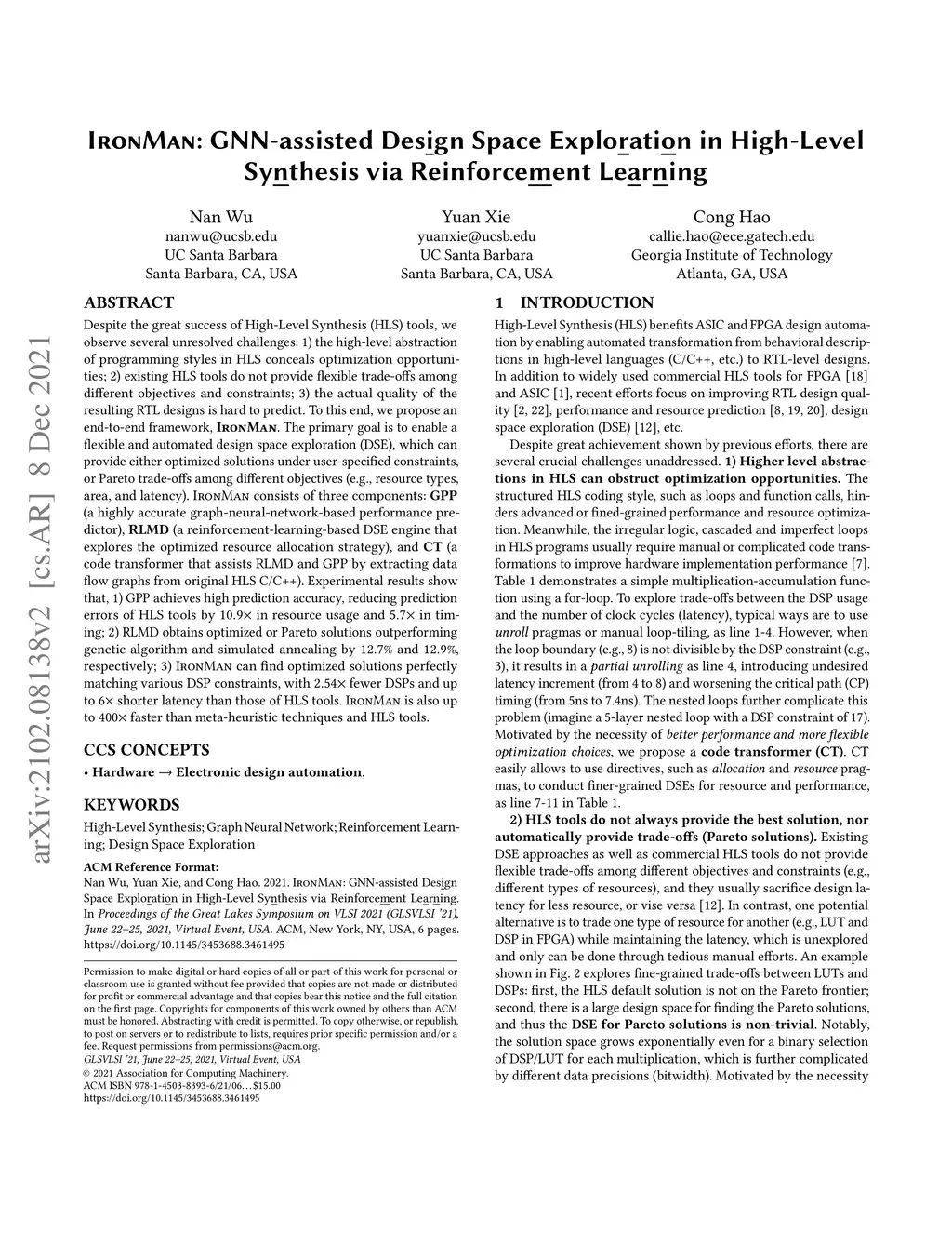 IronMan: GNN-assisted Design Space Exploration in High-Level Synthesis