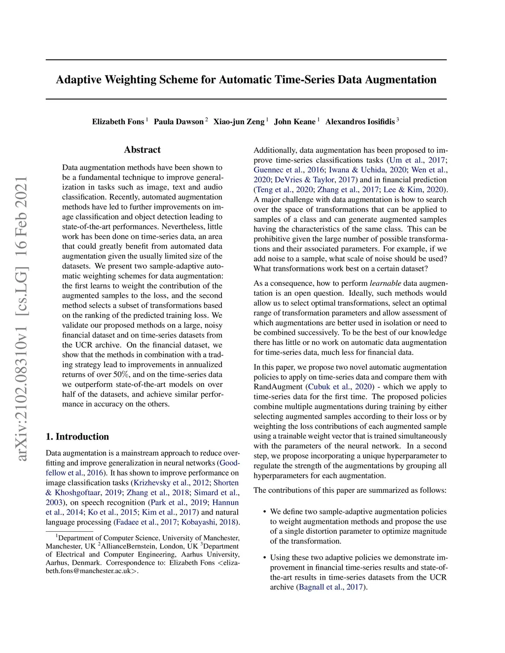 Adaptive Weighting Scheme for Automatic Time-Series Data Augmentation