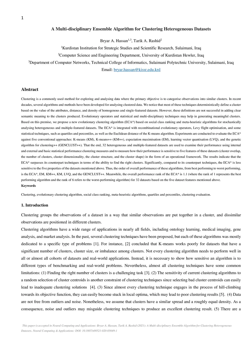A Multi-disciplinary Ensemble Algorithm for Clustering Heterogeneous