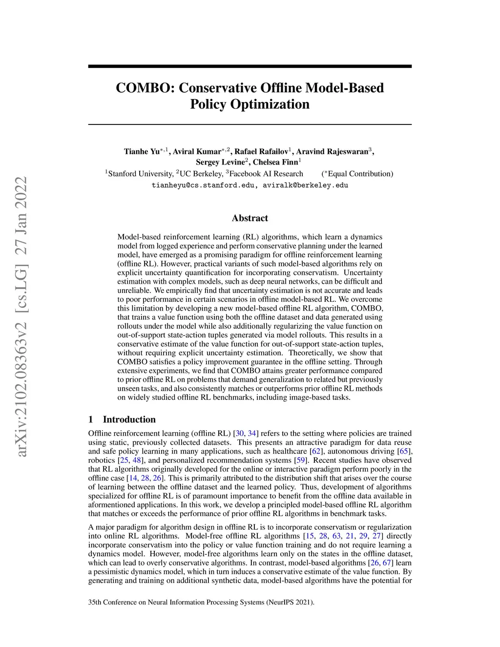 COMBO: Conservative Offline Model-Based Policy Optimization