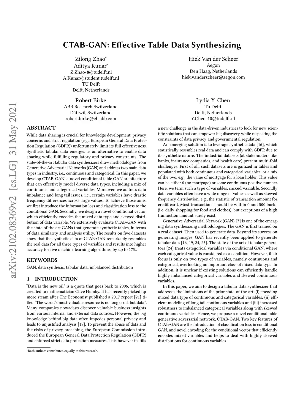 CTAB-GAN: Effective Table Data Synthesizing