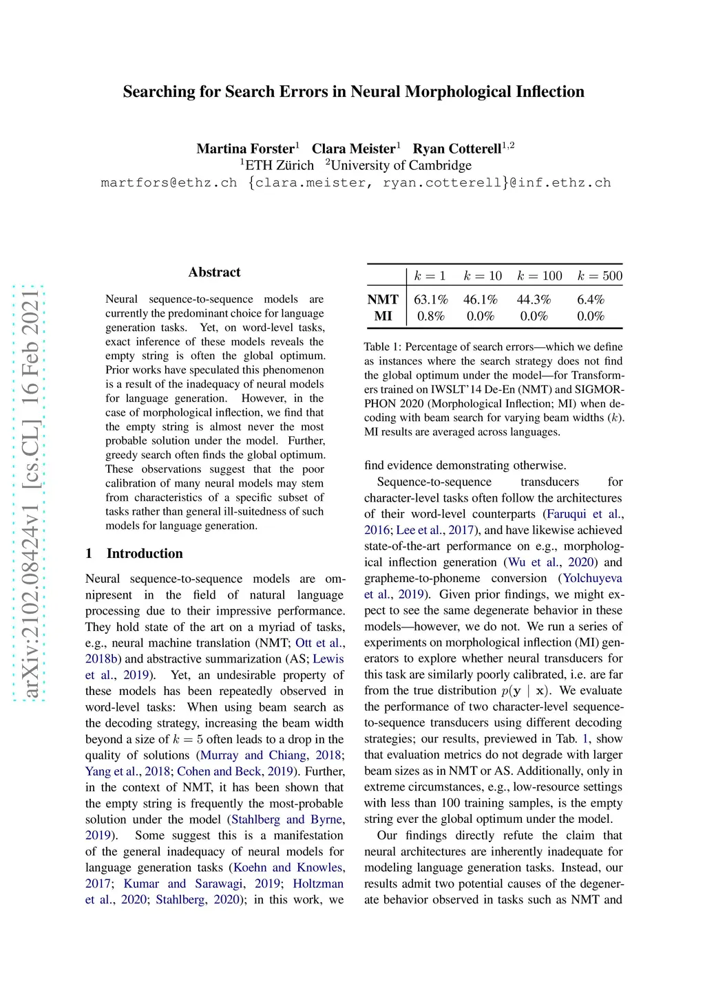 Neural sequence-to-sequence models are currently the predominant choice for language generation tasks. Yet, on word-level tasks, exact inference of these models reveals the empty string is often the global optimum. Prior works have speculated this phenomenon is a result of the inadequacy of neural models for language generation. However, in the case of morphological inflection, we find that the empty string is almost never the most probable solution under the model. Further, greedy search often finds the global optimum. These observations suggest that the poor calibration of many neural models may stem from characteristics of a specific subset of tasks rather than general ill-suitedness of such models for language generation.