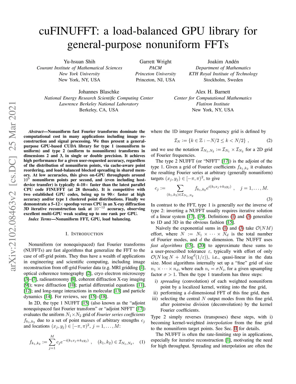 cuFINUFFT: a load-balanced GPU library for general-purpose nonuniform