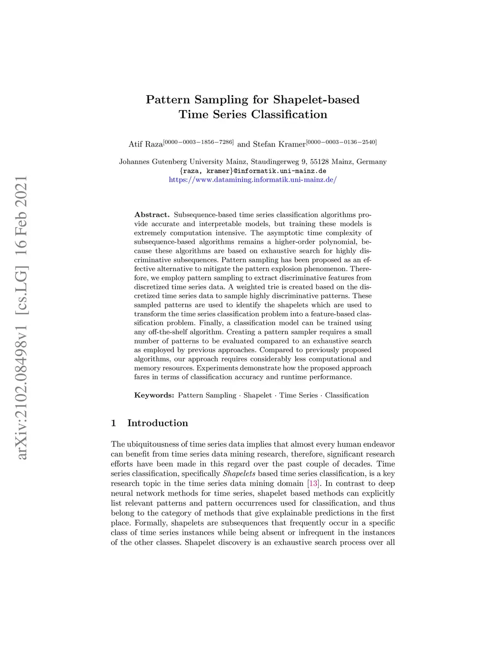 Pattern Sampling for Shapelet-based Time Series Classification