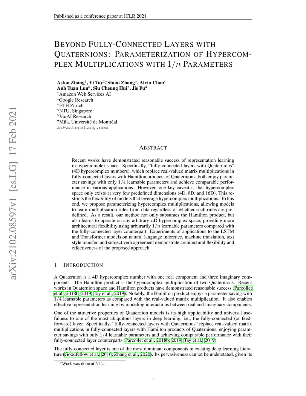 Beyond Fully-Connected Layers with Quaternions: Parameterization of
