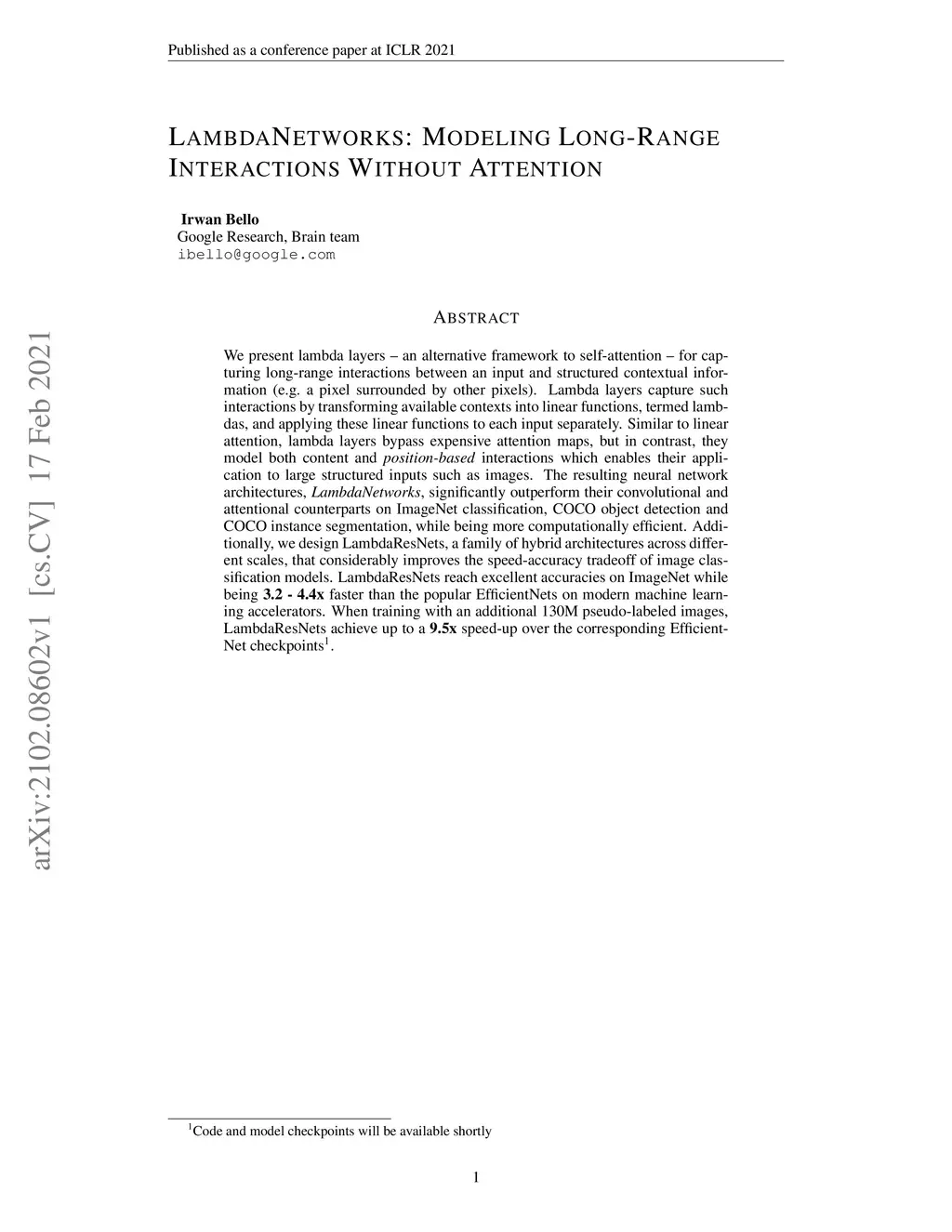 LambdaNetworks: Modeling Long-Range Interactions Without Attention