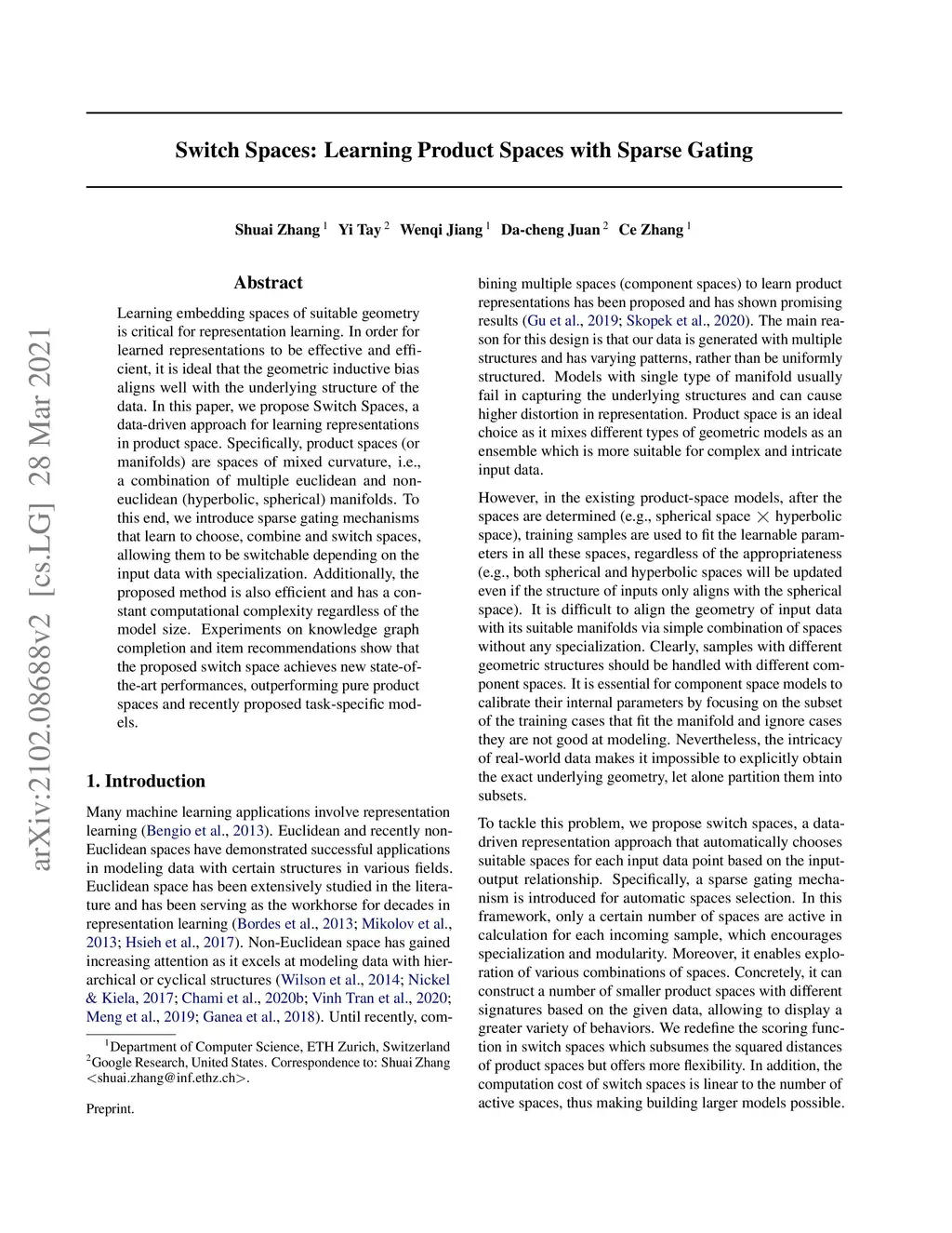 Switch Spaces: Learning Product Spaces with Sparse Gating