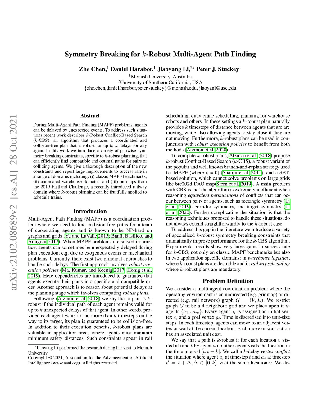 During Multi-Agent Path Finding (MAPF) problems, agents can be delayed by unexpected events. To address such situations recent work describes k-Robust Conflict-BasedSearch (k-CBS): an algorithm that produces coordinated and collision-free plan that is robust for up to k delays. In this work we introducing a variety of pairwise symmetry breaking constraints, specific to k-robust planning, that can efficiently find compatible and optimal paths for pairs of conflicting agents. We give a thorough description of the new constraints and report large improvements to success rate ina range of domains including: (i) classic MAPF benchmarks;(ii) automated warehouse domains and; (iii) on maps from the 2019 Flatland Challenge, a recently introduced railway domain where k-robust planning can be fruitfully applied to schedule trains.